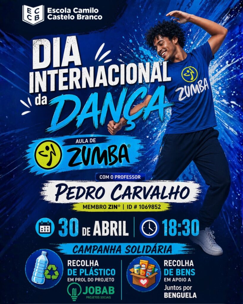 Para celebrar o Dia Internacional da Dança, o grupo disciplinar de Dança convida toda a comunidade escolar para uma aula de Zumba.